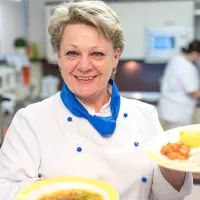 In unserer hauseigenen Küche werden die täglichen Mahlzeiten frisch zubereitet: Vom Frühstück über Zwischenmahlzeit, Mittagessen und Kaffeezeit bis hin zum Abendessen und dem auf Wunsch servierten spät abendlichen Snack. Auch Diät- oder Schonkost bieten wir Ihnen selbstverständlich gerne an – so kann es sich jede und jeder bei uns schmecken lassen. Das abwechslungsreiche Verpflegungskonzept ist angepasst an die aktuellen Empfehlungen der Deutschen Gesellschaft für Ernährung e.V. (DGE). Auch regionale Spezialitäten sowie die Wünsche der Bewohnerinnen und Bewohner werden dabei natürlich berücksichtigt. Getränke wie Kaffee, Kakao, Tee, Wasser und verschiedene Fruchtgetränke stehen stets zur Verfügung. Private Feiern der Bewohnerinnen und Bewohner sind ebenfalls möglich – wir helfen gerne bei der Vorbereitung.