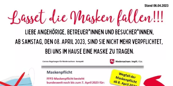 Wegfall der Maskenpflicht für Besucher*innen ab 08.04.2023