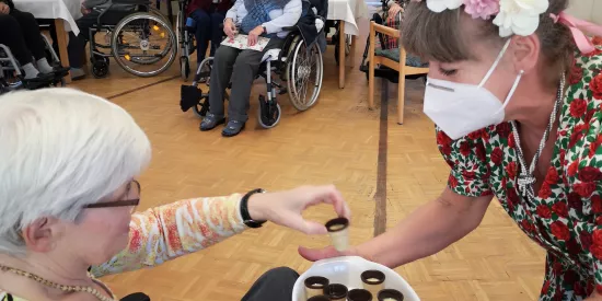 In unserer hauseigenen Küche werden die täglichen Mahlzeiten frisch zubereitet: Vom Frühstück über Zwischenmahlzeit, Mittagessen und Kaffeezeit bis hin zum Abendessen und dem auf Wunsch servierten spät abendlichen Snack. Auch Diät- oder Schonkost bieten wir Ihnen selbstverständlich gerne an – so kann es sich jede und jeder bei uns schmecken lassen. Das abwechslungsreiche Verpflegungskonzept ist angepasst an die aktuellen Empfehlungen der Deutschen Gesellschaft für Ernährung e.V. (DGE). Auch regionale Spezialitäten sowie die Wünsche der Bewohnerinnen und Bewohner werden dabei natürlich berücksichtigt. Getränke wie Kaffee, Kakao, Tee, Wasser und verschiedene Fruchtgetränke stehen stets zur Verfügung. Private Feiern der Bewohnerinnen und Bewohner sind ebenfalls möglich – wir helfen gerne bei der Vorbereitung.