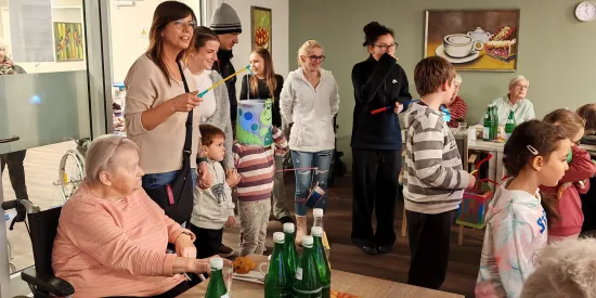 Aktiv und lebensbejahend den Tag verbringen – so steht es auf unserem Veranstaltungskalender. Dazu gehören zahlreiche unterschiedlichste Anlässe, zu denen auch oftmals Angehörige eingeladen sind. Für sie veranstalten wir auch regelmäßige Angehörigenabende und sind auch sonst jederzeit ansprechbar. Mit vielfältigen Aktivitäten wie Gymnastik, Gedächtnistraining und kreativem Gestalten sorgen wir für Abwechslung im Alltag. Fröhliche Stimmung ist garantiert, wenn wir gemeinsam im Seniorenheim in Bingen jahreszeitliche Feste feiern: Fastnacht, Sommer- und Oktoberfest, Advent, Geburtstage und vieles mehr. Lassen Sie sich überraschen!