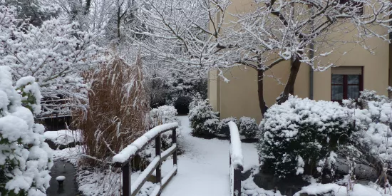 Die DOREAFAMILIE Braunschweig – Wohnpark am Wall liegt direkt am Braunschweiger Grüngürtel, der die historische Altstadt der „Löwenstadt“ umschließt. Über das elegante Park- und Gartengelände führt die Eulenspiegeltwete, beliebter Rad- und Fußweg, dem man direkt ins Stadtzentrum folgen kann. Wenn die Japanischen Zierkirschen blühen, beobachten wir oft Hochzeitspaare vor dieser wunderschönen Kulisse. Der Japanische Garten mit kunstvoll gestalteten Teichen, in denen Kois schwimmen, mit geschwungene Holzbrücken, Wasserfällen und bequemen Sitzplätzen unter Sonnenschirmen sowie einem Pavillon ist eines der vielen attraktiven Merkmale unseres Hauses. Vom Restaurant mit seinem gemütlichen Wintergarten aus genauso wie von vielen Balkonen und Terrassen genießen die Bewohnerinnen und Bewohner einen herrlichen Blick auf die Pflanzen- und Wasserwelt. Alle Wege sind seniorengerecht gestaltet. Sie sind eine beliebte Möglichkeit für kurze Rundgänge an der frischen Luft.