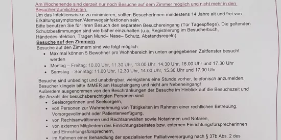 Besuchsregeln ab dem 28.09.2020 für die DOREAFAMILIE Dietzenbach