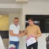Voller Stolz gratulieren wir unseren zwei neuen frisch ausgebildeten Pflegefachkräften zum Examen 2023 mit einem Übernahme-Scheck von jeweils 500€.