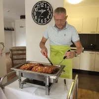 Zur Feier des Tages gab es leckeren Schinkenbraten mit Krautsalat im Brötchen in geselliger Runde.