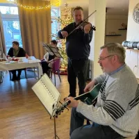 Ein weiteres musikalisches Highlight bot Andreas, welcher die Bewohner mit bekannten klassischen- und weihnachtlichen Liedern auf seiner Geige verzauberte. Anschließend wurden die Feiern mit einem leckeren Abendessen durch sehr schön hergerichtete Schnittchenplatten, Tomate Mozzarella, Frikadellen und weiteren Leckereien beendet.