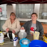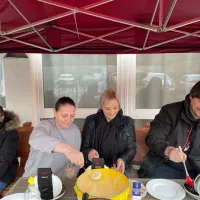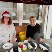 Neben frisch gebackenen Waffeln mit Eis, Sahne und Kirschen, süßen Weihnachtsleckereien und Punsch freuten sich alle über das gemeinsame Singen der Weihnachtslieder in Begleitung unseres Gitarrenspielers Charly.