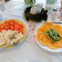 Neben sehr appetitlich-schön dekorierten Aufschnitt- und Käseplatten gab es u.a. Lachs, Mett und verschiedene Aufstriche mit Croissant und einer Auswahl an frischen Brötchen. Die Tische waren geschmückt mit weißen Tischdecken, frische Blumen und Osterdekoration. Bei der tollen Atmosphäre durfte ein Glas Sekt und schöne Hintergrundmusik nicht fehlen!