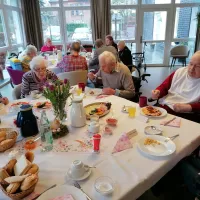 Die Küchenkräfte bereiteten mit viel Herz ein ganz besonderes Frühstück für unsere Bewohner und Bewohnerinnen in unserem Café zu, während die Betreuungskräfte das Café vorbereiteten und den Vormittag begleiteten.