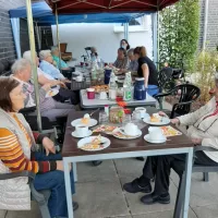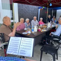 Als Alternative zum diesjährigen Erntedankfest wurden an einem Tag die Bewohner vom Wohnbereich 2 und am nächsten die Bewohner des 3. Wohnbereiches zum Tanztee in den Garten eingeladen.