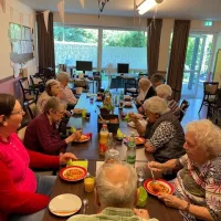 Unter dem Motto kochten wir am Mittwoch mit den Bewohnern von Wohnbereich 3 leckeren Nudelgemüseeintopf und am Nachmittag wurde Italienisches Bilder-Bingo draußen bei bestem Wetter gespielt.