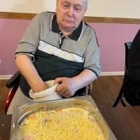 Heute wurde leckere vegetarische Lasagne mit der Unterstützung von den Bewohnern des 2. Wohnbereiches mit italienischer Hintergrundmusik zubereitet. Beides kam super an und es schmeckte sehr gut.