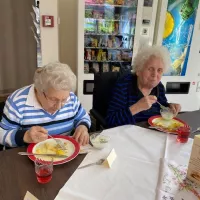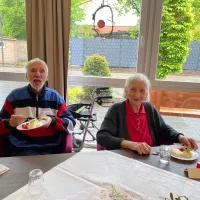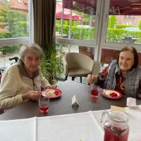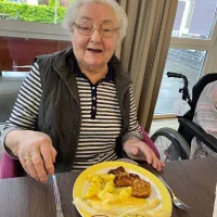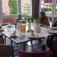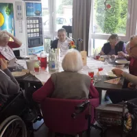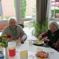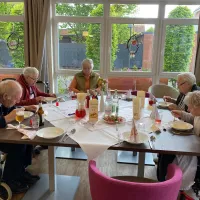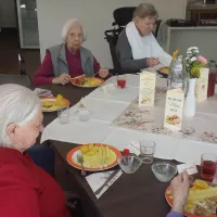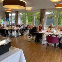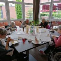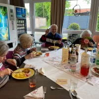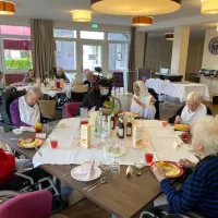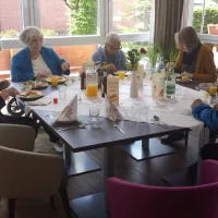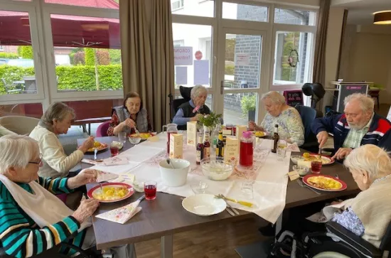 FESTLICHES SPARGEL ESSEN MIT UNSEREN BEWOHNERN Auch die Bewohner des 1., 2., 3. und 4. Wohnbereiches haben das Spargelbuffet bei uns im Café sehr genossen. Und so endete die Mottowoche am Samstag. Zurück