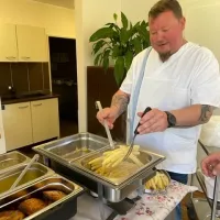 Das Festmahl begann zur Vorspeise mit einer Spargelcremesuppe verfeinert mit Petersilie. Anschließend freuten sich die Bewohner auf das Hauptmenü: der frische Stangenspargel wurde an Sauce Hollandaise/ Buttersauce mit Petersilienkartoffeln an rohen- und gekochten Schinken mit panierte Schweineschnitzel serviert.