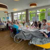 Jeden Mittag von Montag bis Freitag fand für einen unserer fünf Wohnbereiche ein festliches Spargelessen in unserem Café statt. Unsere Köche und Köchinnen haben sich täglich viel Mühe gegeben und das Essen mit viel Liebe zubereitet und serviert.