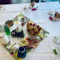 Gestern startete unsere nächste Mottowoche: die "BRUNCH - Woche" bei schön gedecktem Tisch mit Frühlingsdekoration im Café.