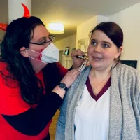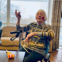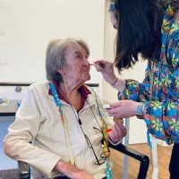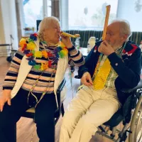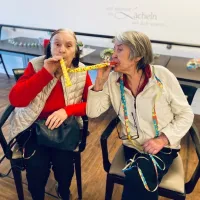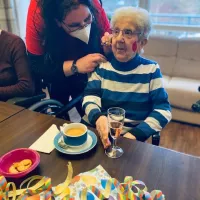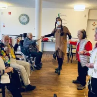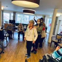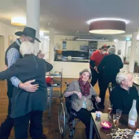 Neben einem Gläschen Sekt und Knabbereien wurde ausgiebig getanzt, herzlich gelacht und die Lieder mitgesungen. Einige Bewohner und Pflegekräfte bekamen ein Herzchen auf die Wange gemalt.