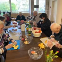 Die Bewohner werden täglich eine gesunde Zwischenmahlzeit bekommen und - wie Sie sehen könnt - aktiv bei der Zubereitung mithelfen.