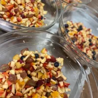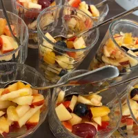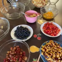 Heute gab es für das gesamte Haus bunten Obstsalat mit Äpfel, Bananen, Pflaumen, Weintrauben, Erdbeeren, Orangen und Heidelbeeren.