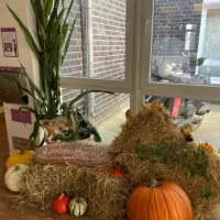 JETZT WIRDS HERBSTLICH BEI UNS Passend zum Herbstanfang erstellen wir gemeinsam mit unseren Bewohnern tolle Herbstdekoration für die Tische auf den Wohnbereichen aus Naturmaterialien. Auch der Eingangsbereich ist jetzt herbstlich gestaltet. Zurück