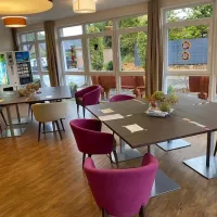 2. Sie dürfen sich ausschließlich nur in dem Bewohnerzimmer oder in den drei Corona-Ecken im Café mit ihrem Angehörigen aufhalten.