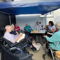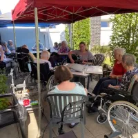 Wenn die Sonne scheint, gehen die Betreuungskräfte abwechselnd mit einer Wohnbereichsgruppe nach draußen, um das tolle Wetter zu genießen. Nebenher werden die älteren Lieder gesungen, die von der Betreuungsleitung mit ihrer Gitarre begleitet werden. Zum Schluss werden immer gerne Bewegungslieder getanzt, um unsere Bewohner nicht zur geistig, sondern auch körperlich fit zu halten.