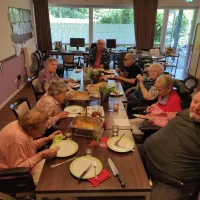 Heute bereiteten wir mit unseren Bewohnern vom Wohnbereich 5 leckere Pizzen zu, die selbstverständlich anschließend gemeinsam in italienisch-dekorierter Räumlichkeit mit netter Gesellschaft mit einem Gläschen Traubensaft verzehrt wurden.
