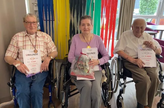 UNSERE GLÜCKLICHEN GEWINNER VON WOHNBEREICH 2 Die Bewohner des 2. Wohnbereiches hatten heute viel Spaß an der Seniorenolympiade. Besonders freuten sich unsere 3 Gewinner!! Zurück