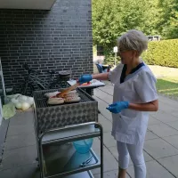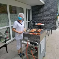 Als alle Bewohner fertig waren wurde gemeinsam gegrillt und zu Mittag gegessen.