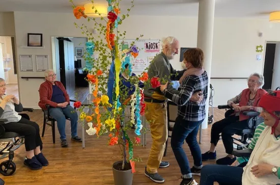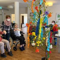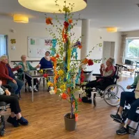 WIR TANZEN IN DEN MAI Heute haben wir auf allen 5 Wohnbereichen einen Maibaum aufgestellt und unsere fleißigen Bewohner haben diesen bunt geschmückt. Knabbereien, ein Tänzchen zur Musik und Alster durfte nicht fehlen ... Zurück