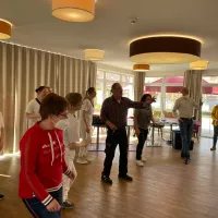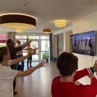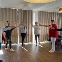 So wurden alle Bereiche an verschiedenen Tagen eingeladen, zusammen zur Musik einfache Zumba-Schritte zu lernen und zu tanzen.