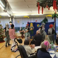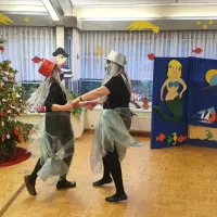Mit Shantymusik und Meerjungfrauen ließen wir das alte Jahr ausklingen. Im maritim geschmückten Speisesaal ließen es sich unsere Bewohner mit einem tollen Programm, Berlinern, Bowle und einem Gläschen Sekt gut gehen.