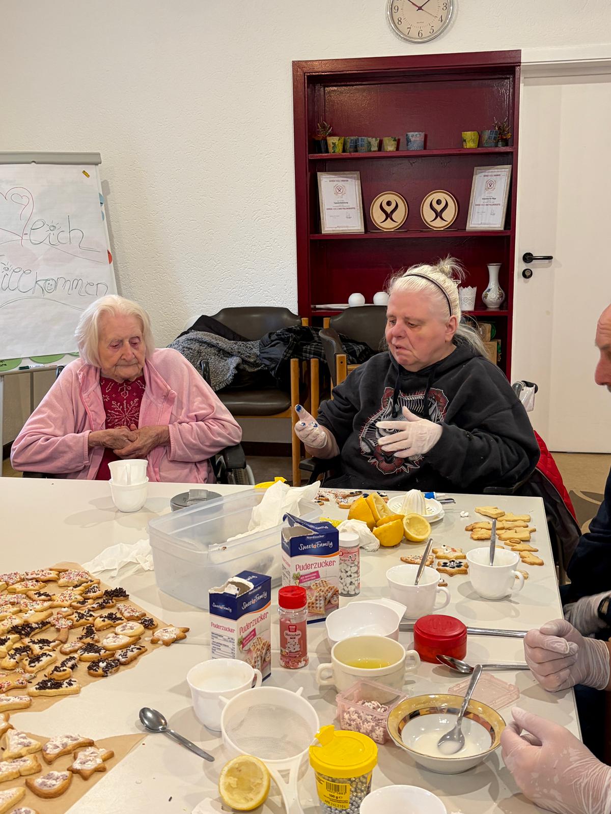 In der Weihnachtsbäckerei... Zwei Tage wurde bei uns in Dorfmark fleißig Plätzchen gebacken. Gerührt, gemixt. geknetet und natürlich durfte die Kreativität nicht fehlen. Unsere Bewohner hatten jede Menge Freude & Spaß. Zurück