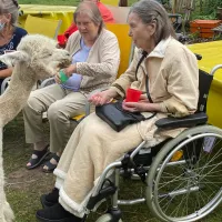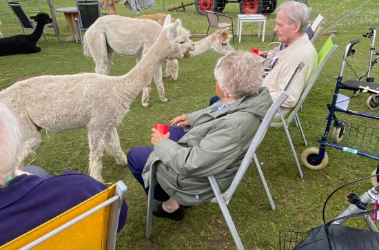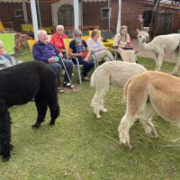 Ein Besuch auf dem Alpakahof Kürzlich unternahmen unsere Bewohner einen tollen und entspannten Ausflug. Die Alpakas mit ihrem freundlichen Wesen weckten auf Anhieb Empathie und Zuneigung. Zurück