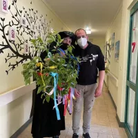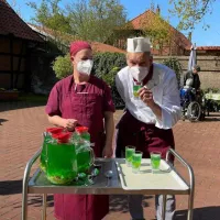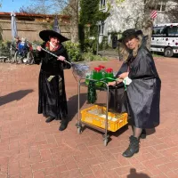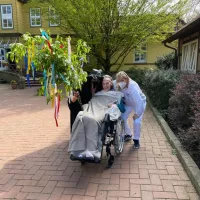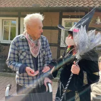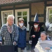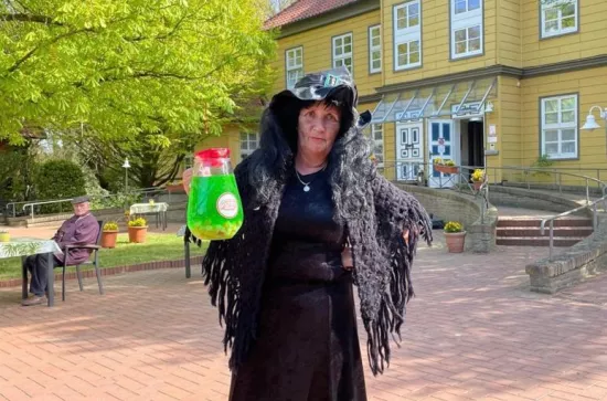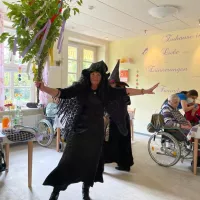 Der 1. Mai wurde gebührend gefeiert. Die Hexen Bifa, Agnes und Mifa feierten die Walpurgisnacht auf dem Brocken durch und statteten uns am nächsten Morgen mit ihrem mobilen Maibaum und jeder Menge Schokoladenmaikäfer einen Besuch ab. Auf dem Gelände, in den Häusern und auf den Wohnbereichen verzauberten sie unsere Bewohner.