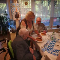 Oktoberfest Fröhliche "Wiesn"- Stimmung kam in Dorfmark auf. Das Unterhaltungsteam wurde freudig von den Bewohnern begrüßt. Es fehlte an nichts. Haxe, Knödel und Sauerkraut alles war da. Oans,zwoa, gsuffa! Zurück