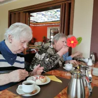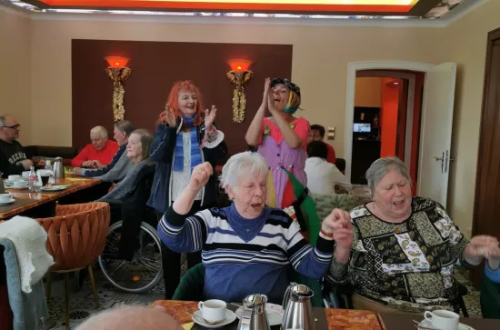 In Bad Fallingbostel gibt es das Singh Indian Restaurant. Sie bieten jeden Mittwoch kostenloses Kaffee trinken und Kuchen essen, für Senioren an. Das haben wir uns also nicht entgehen lassen. Es war eine sehr gemütliche, familiäre Atmosphäre. Die Bewohner haben es genossen. Außerdem hat unser Clown ,,Happy'' ein bisschen extra Stimmung in das Restaurant gebracht. Mit Musik fingen die Besucher an zu singen und zu tanzen. Ein absolut gelungener Nachmittag.
