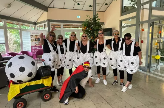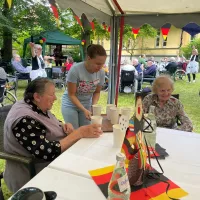 Unser Sommerfest zum Thema Fußball war ein voller Erfolg. Die tanzenden Fußbälle, das musikalische Unterhaltungsprogramm, das Schätzen des schweren Balles, Die Siegerehrung und die Bewirtung durch unsere Küche trugen an diesem herrlichen Sommertag zu einem super Nachmittag bei. Dank der tollen Planung war es für unsere Bewohner ein herrlicher Tag. "Eine super Teamleistung!"