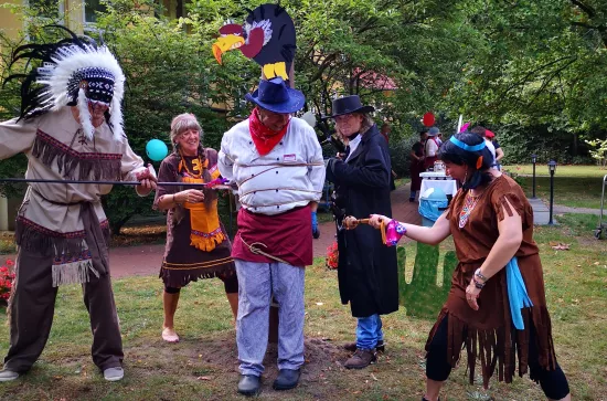 Mit einer kleinen Inszenierung über die Geburt eines Stammhalters eröffneten die "Schauspieler" das Fest. Unsere Bewohner fühlten sich richtig wohl in der Welt der Indianer.