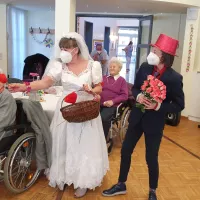 Valentinstag Wie in jedem Jahr wurde auch wieder das Fest der Liebe mit Rosen, Pralinen und Romantik gefeiert. Zu diesem Anlass wurde ein Liebespaar-Sketch vorbereitet. Sogar ein kleiner Einblick in die Hochzeitsnacht war möglich. Ein schöner, freudvoller Tag! Zurück