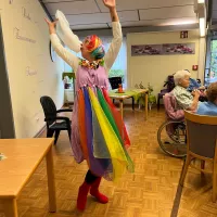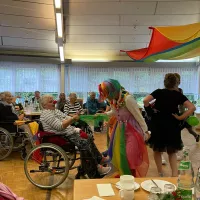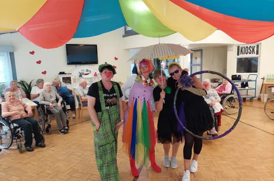 Zirkus Knalli Wir haben unsere Bewohner zum lachen gebracht, denn lachen ist gesund. Es hieß "hereinspaziert in den Zirkus Knalli!" So zeigte jeder der Clownies seine Kunststücke oder versuchten es. Und dann waren da plötzlich die roten Punkte auf der Nase. Zurück