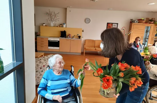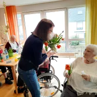 Alles Gute zum Weltfrauentag... Unseren Bewohnerinnen und Mitarbeiterinnen wurden am Frauentag Blumen und Glückwünsche überreicht.. die Freude war groß :-) Zurück