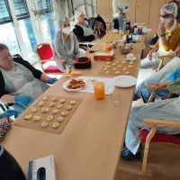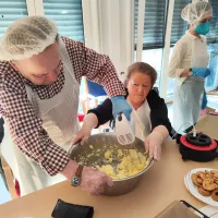 Gestern am Valentinstag hatten wir Besuch von Schülern des Albertus Magnus Gymnasiums in Bensberg. Gemeinsam mit einigen Bewohnern wurden Amerikaner gebacken.