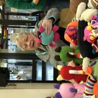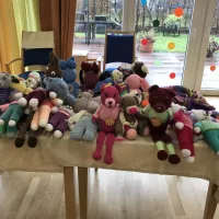 Wir arbeiten seit einigen Jahren mit dem Verein Trostteddy e.V. zusammen. Einmal im Monat treffen sich Bewohner und Mitglieder des Vereins bei uns im Haus, um Teddys und andere bunte Kuscheltiere zu häkeln oder zu stricken. Die fertigen Kuscheltiere werden dann an Krankenhäuser, Arztpraxen oder Rettungssanitäter gegeben, damit sie diese an kranke Kinder verteilen können.