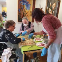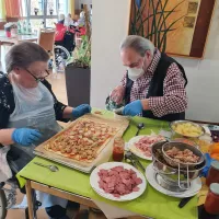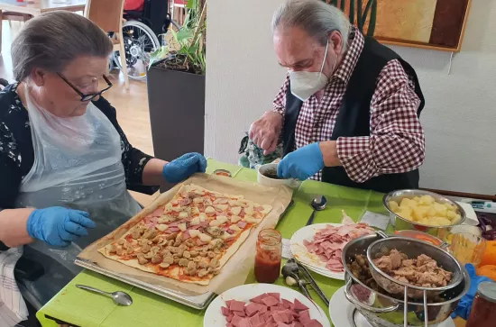 Frische Pizza zum Abendessen Gestern Abend haben zwei Bewohner für das Abendessen frische Pizza zubereitet, die liebevoll belegt wurde. Sie war so lecker, dass kein Stück übrig geblieben ist. Wir freuen uns schon auf die nächste Pizza :-). Zurück