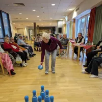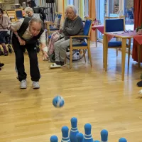 Mindestens einmal in der Woche verwandelt sich unser Hausrestaurant zu einer Kegelbahn und es erscheinen zahlreiche Bewohner, die gerne an dem Gruppenangebot teilnehmen. Der "Kegelkönig" wird immer mit einem kleinen Preis belohnt.