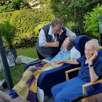 Am Freitag war es endlich soweit. Nach einer 1,5 Jahren Pausen durften "Die Flöckchen" endlich wieder bei und auftreten. Das Gesangsduo ist bei unseren Bewohnern sehr beliebt und die Terrasse füllte sich schnell. Bei Hotdogs und Kölsch wurde geschunkelt, gesungen und gelacht. Die Stimmung war so gut, dass es mehrere Zugaben gab. Vielen Dank an die Flöckchen und ihr Technikteam. Wir freuen uns schon auf euren nächsten Auftritt.