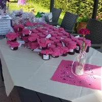 Die DOREAFAMILIE BERGISCH GLADBACH überrascht Sie auf der Terrasse hinter dem Haus mit Bastelarbeiten, Informationen zum Haus, einem Stand des Vereins Trostteddy e.V. sowie einem Hotdog Stand und leckeren Waffeln.