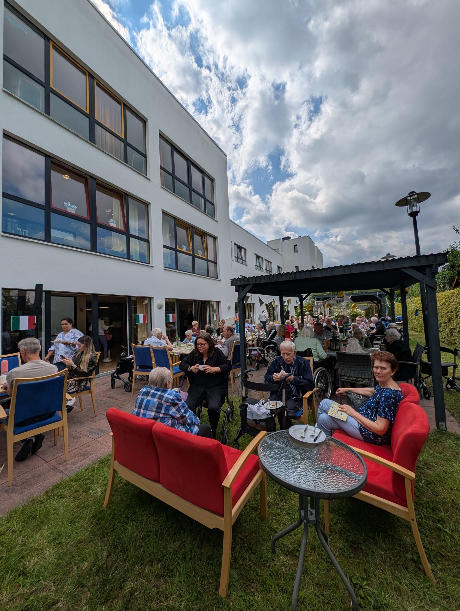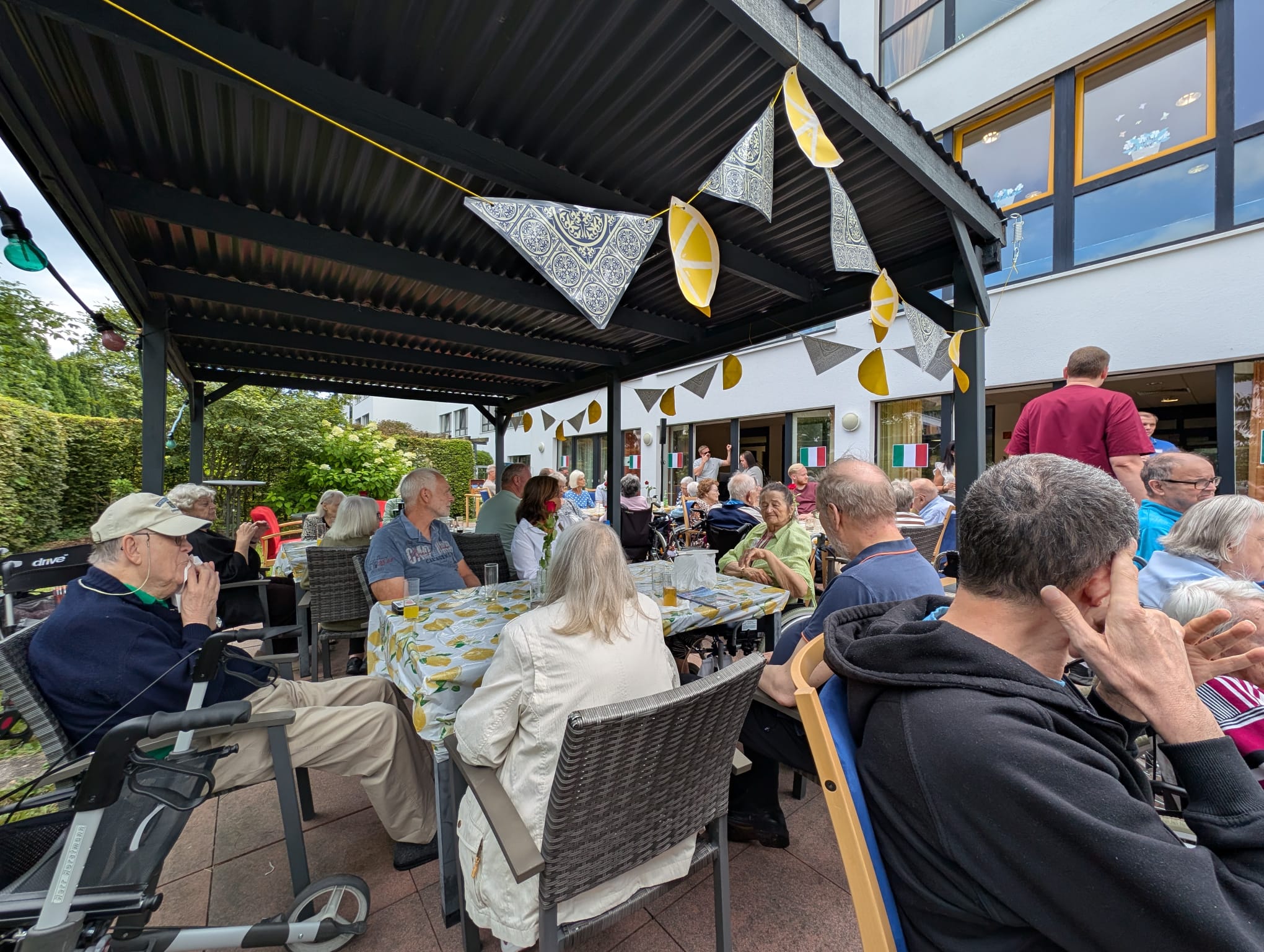 Für die passende Stimmung sorgte DJ Markus mit italienischer Musik, die viele unserer Bewohnerinnen und Bewohner zum Tanzen einlud. Ein abwechslungsreiches italienisches Buffet ließ keine Wünsche offen und wurde begeistert genossen. Ein besonderes Highlight war auch die Fotobox, die für viele schöne und lustige Erinnerungen sorgte.