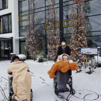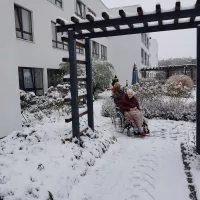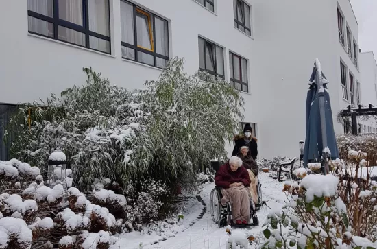 Endlich hat es mal geschneit. Die Bewohner haben lange auf die weiße Pracht gewartet. Daher haben wir uns alle dick eingepackt, um einen Spaziergang im Garten zu machen. Es war eine herrliche Luft und die Bewohner freuten sich über die verschneite Landschaft.
