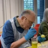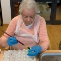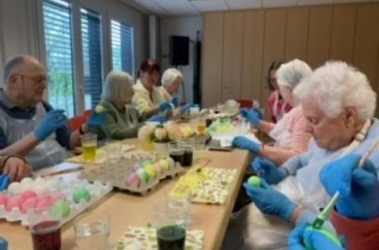 Wir haben den Osterhasen unterstützt Am Mittwoch haben die Bewohner fleißig Ostereier gefärbt, die Ostersonntag verteilt werden. Alle waren konzentriert bei der Sache und hatten dabei viel Freude. Mit dem Ergebnis waren alle zufrieden und nun freuen wir uns auf ein schönes Zurück